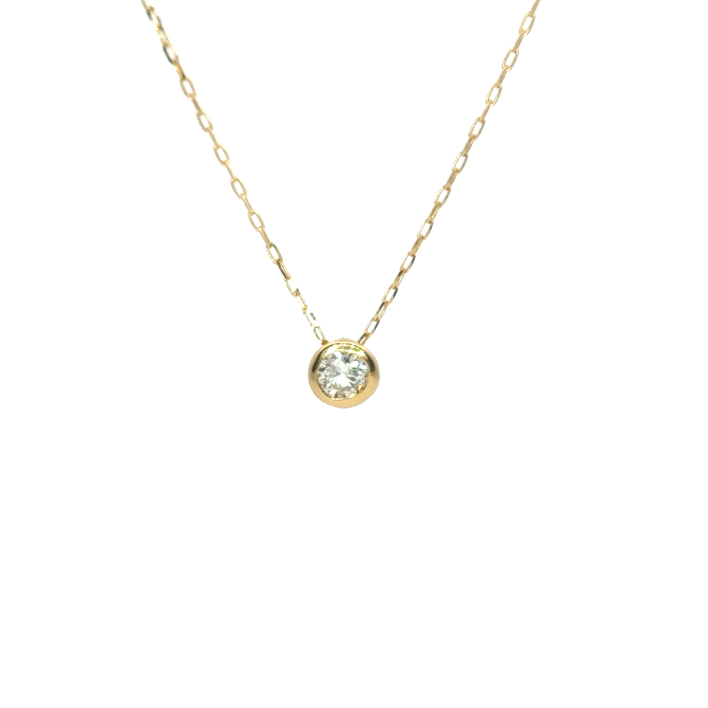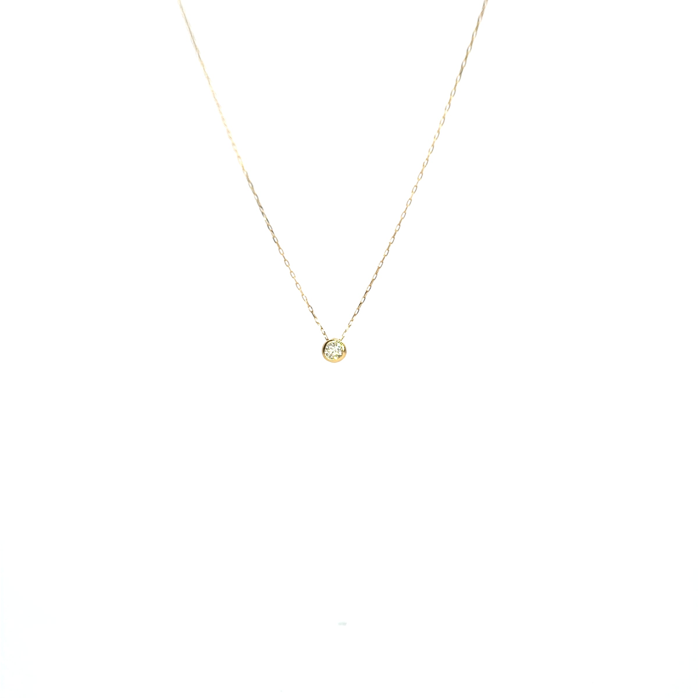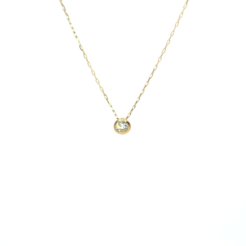 Collar de .10ct. De diamante solitario con bisel en oro amarillo de 18k.