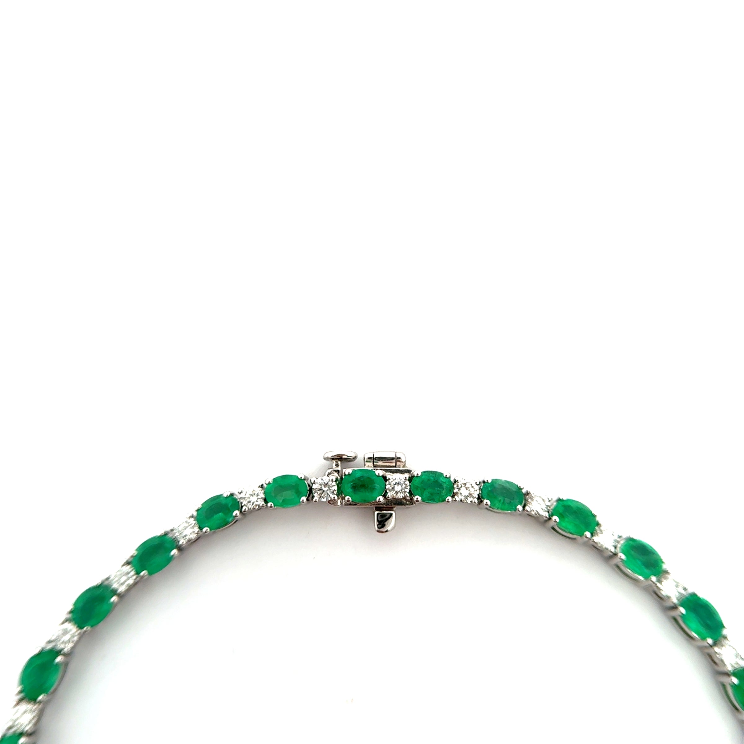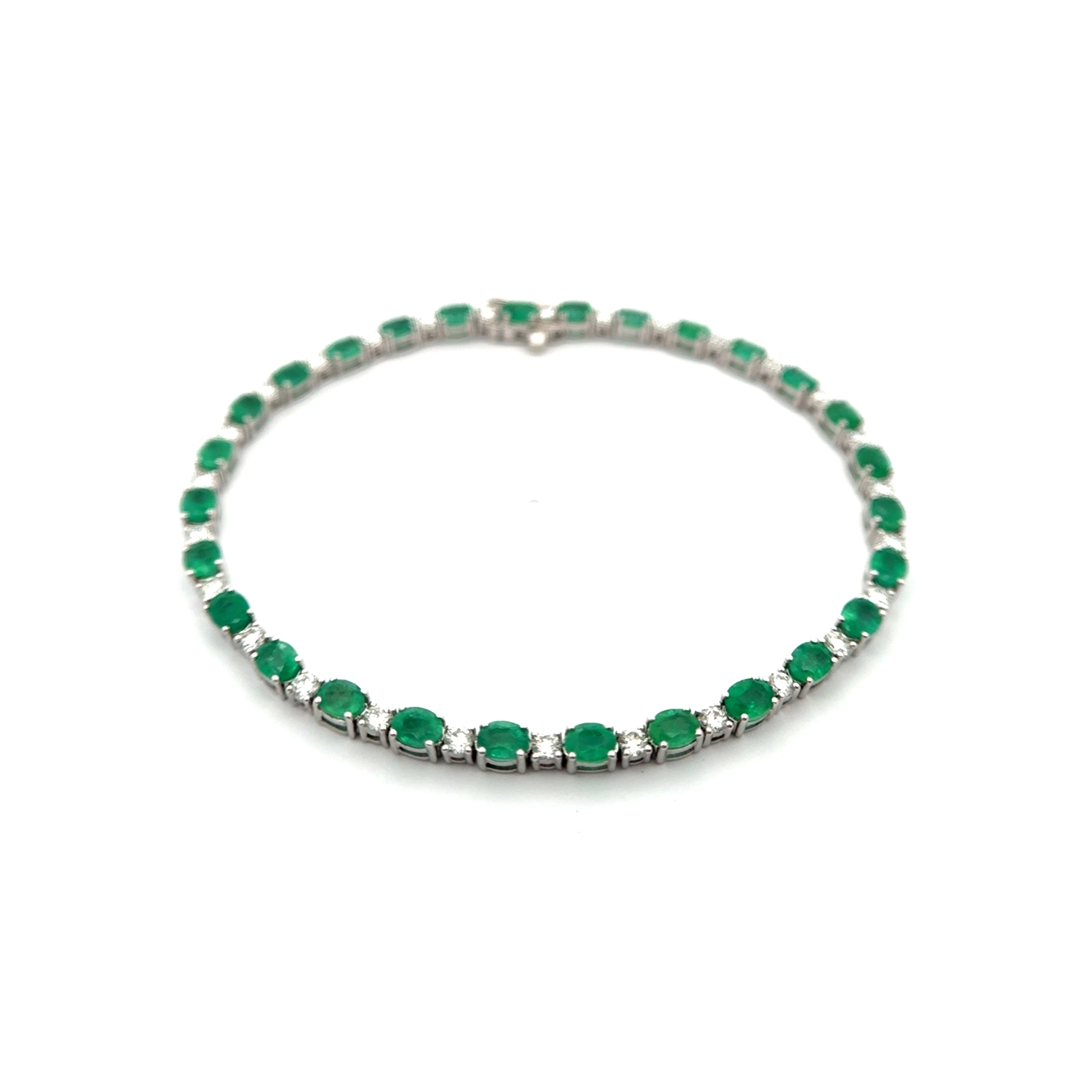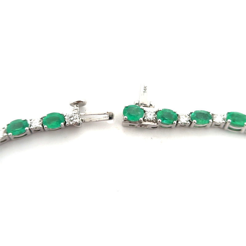 Pulsera tenis de 4.74ct. de esmeraldas corte oval con 1.25ct. De diamantes oro blanco 14k.