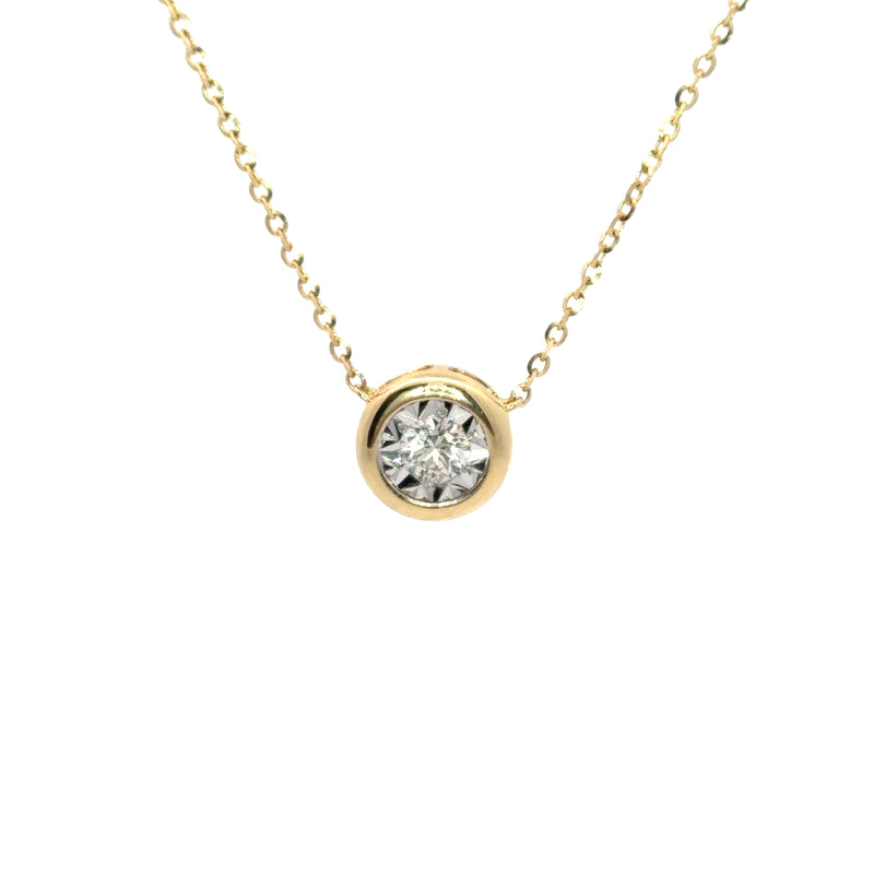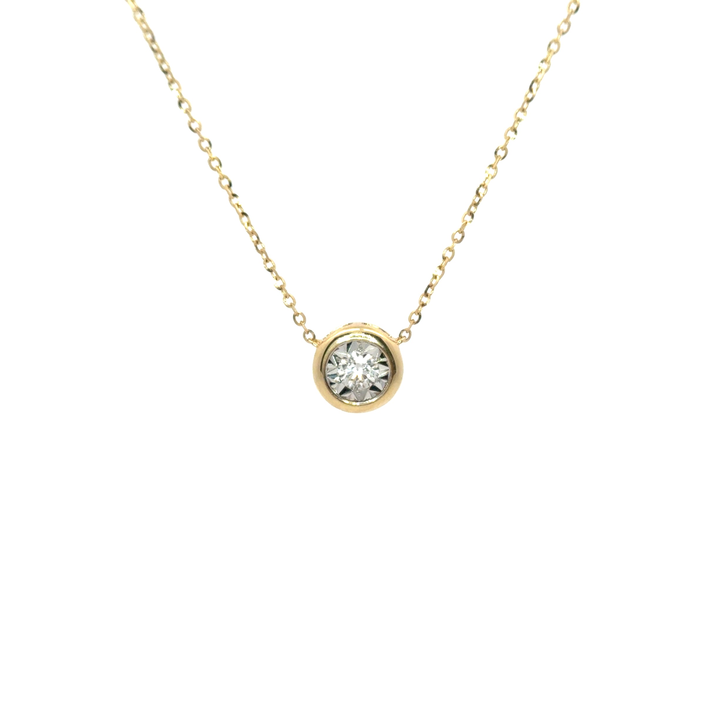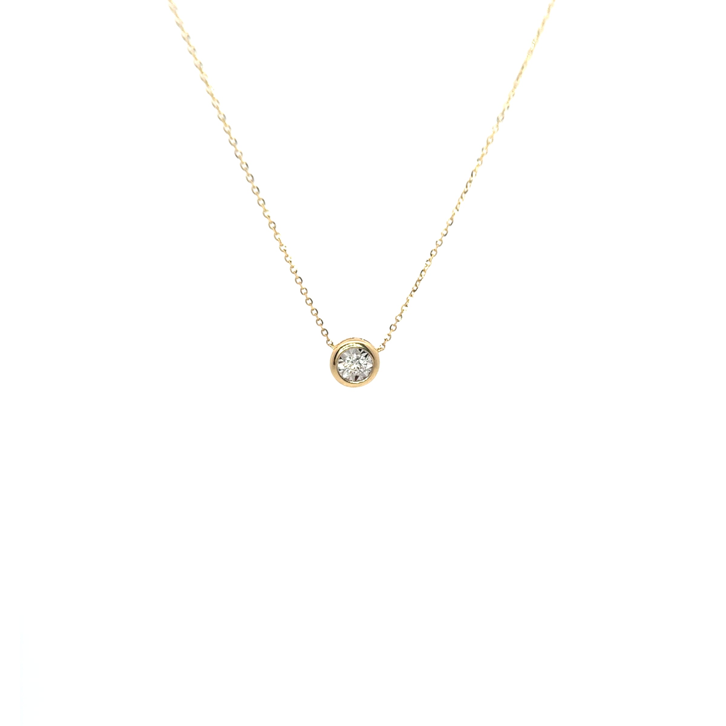 Collar solitario con .20ct. de diamante con bisel en oro amarillo de 14k.
