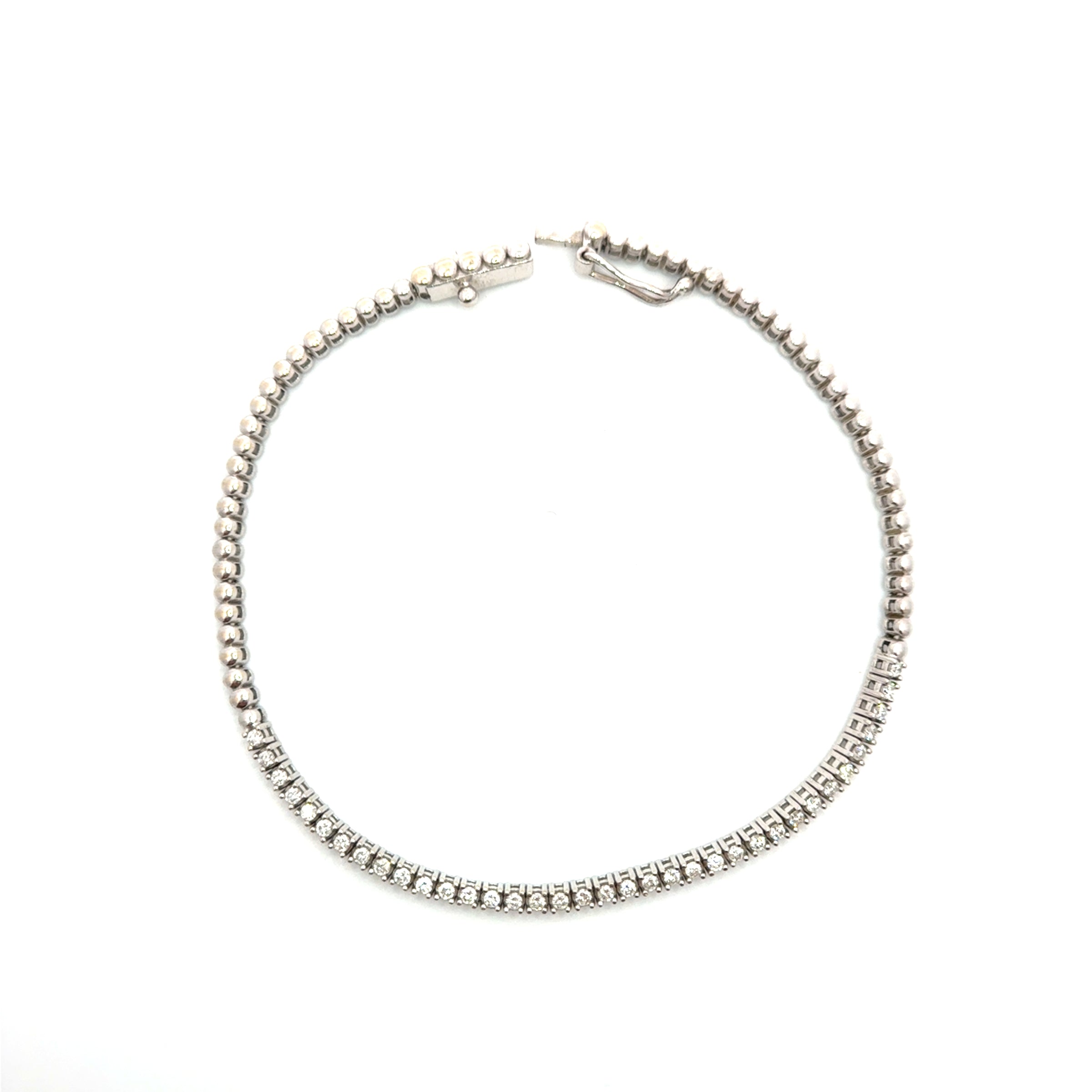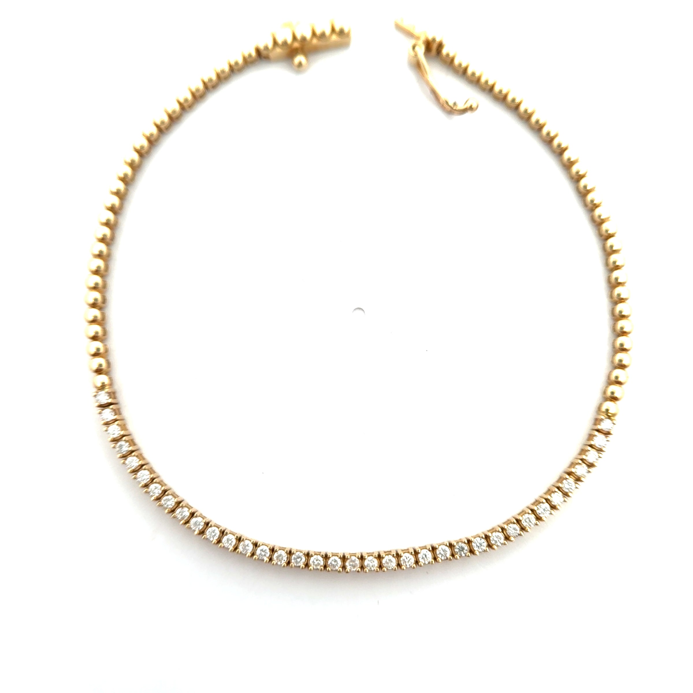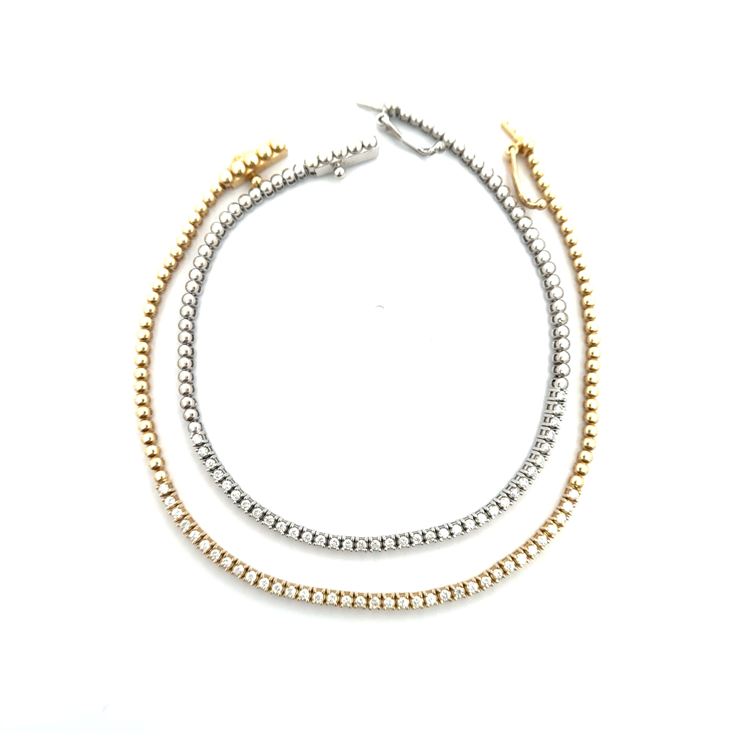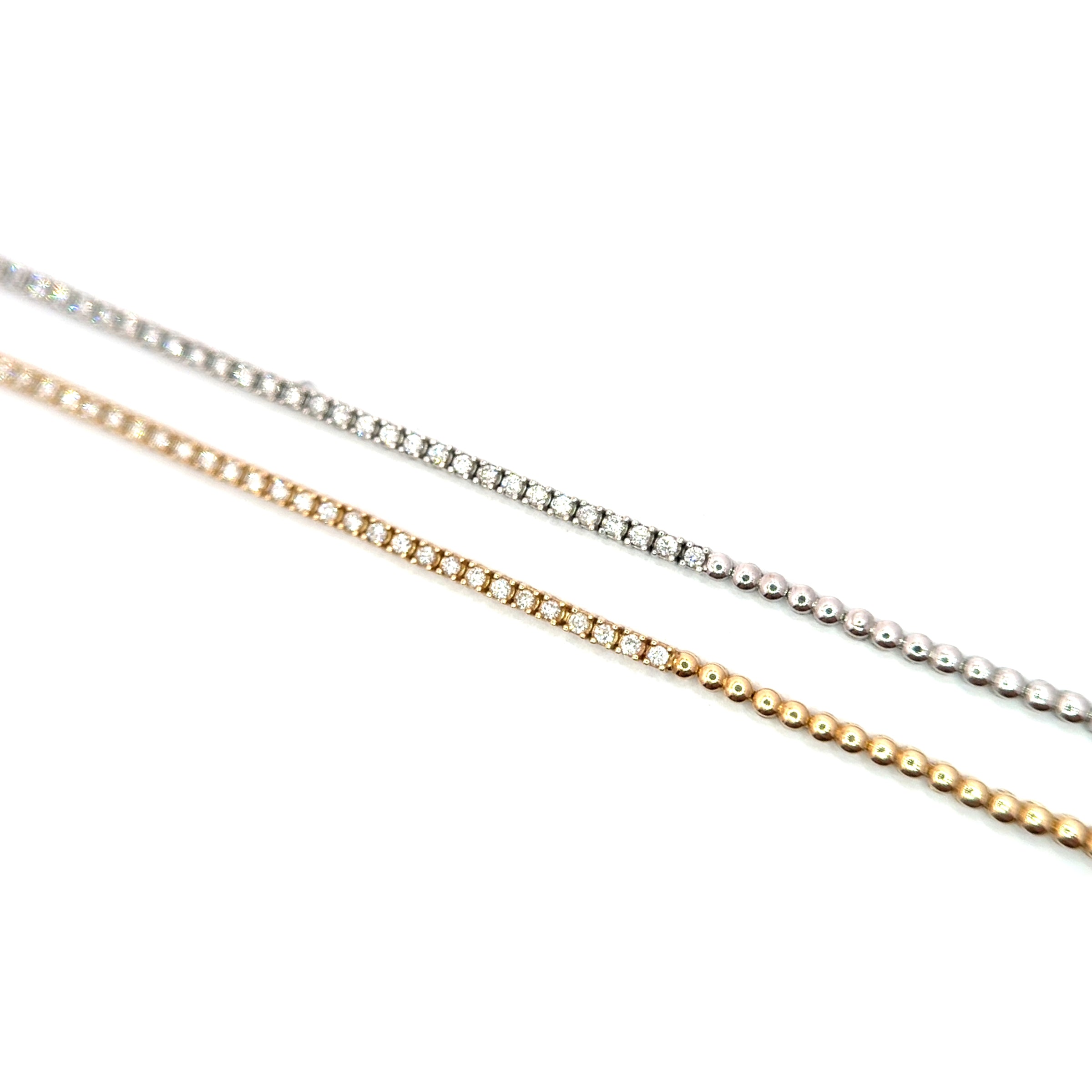 Half-tennis de .40ct. De diamante y half bead bracelet de oro blanco o amarillo 14k.