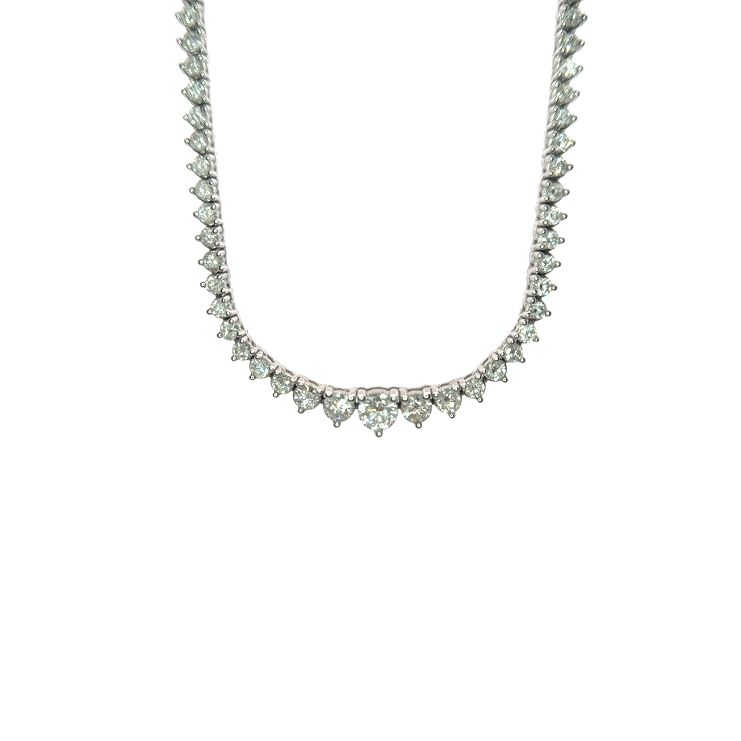 Collar tenis de 3.17ct. De diamante gradual 3-prongs, terminación bead necklace oro blanco 14k. (40cm.)
